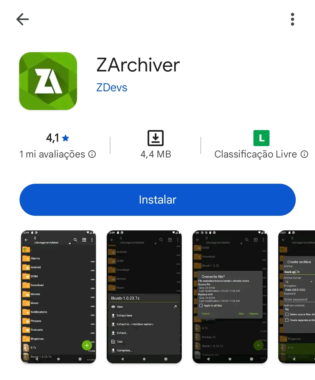 Se você recebeu um arquivo ZIP, é importante verificar o que tem dentro dele antes de extraí-lo no armazenamento interno do celular, seja por questões de segurança ou porque algo pode ocupar muito espaço. Nesse segundo método, vamos utilizar o aplicativo ZArchiver, disponível gratuitamente na Play Store.